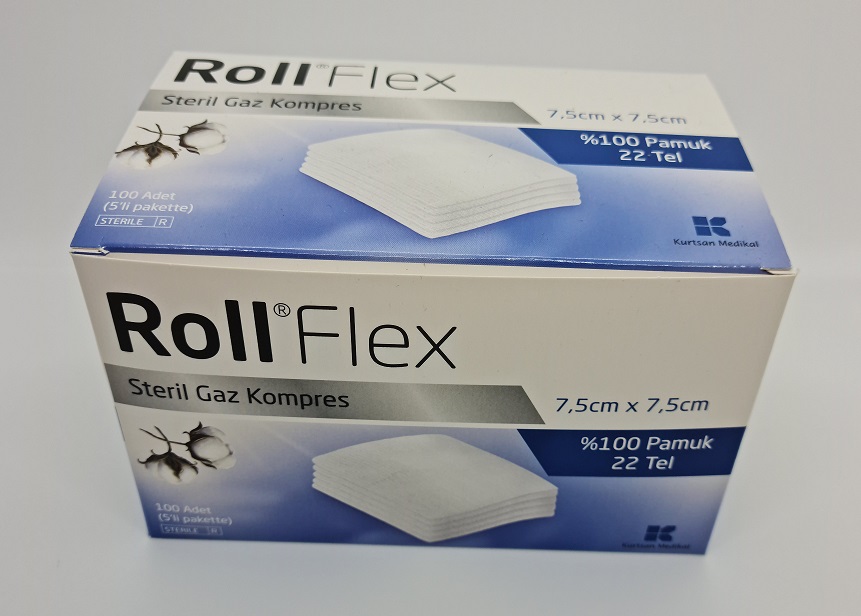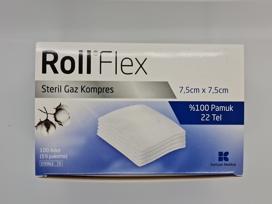 ROLL FLEX STERİL GAZ KOMPRES 7,5*7,5 %100 PAMUK 22 TEL